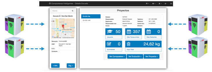 El Sistema automatiza la adquisición de métricas de uso de los Cestos Inteligentes, cantidad de veces utilizados y volumen de residuos segregados.